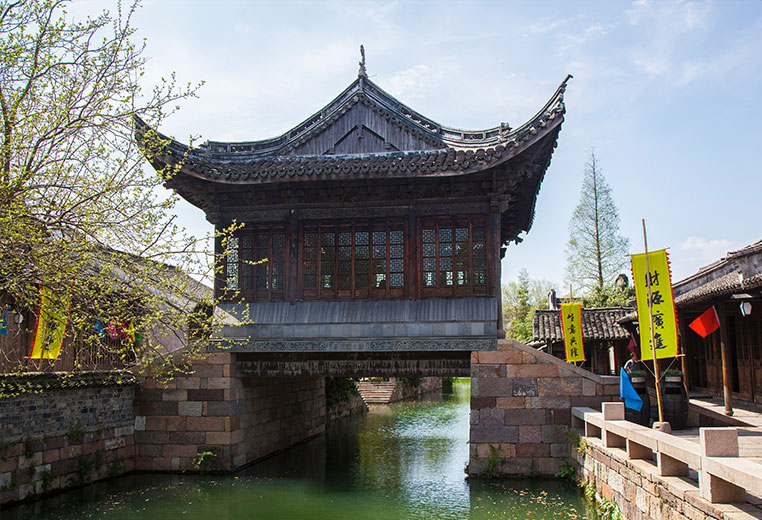 蠶聖橋位于(yu)益大(da)絲(si)号蠶絲(si)作(zuò)坊區(qu)內(nei),跨西市(shi)河支流,呈南(nan)北走(zou)向,北接蠶絲(si)作(zuò)坊區(qu),南(nan)通(tong)蠶絲(si)作(zuò)坊附屬區(qu)。此橋全長(zhang)13.6米,淨跨4.6米,橋面寬7.7米。該橋最大(da)的(de)特點昰(shi)橋上建(jian)有(yǒu)一(yi)幢木(mù)結構的(de)歇山(shān)頂建(jian)築。歇山(shān)頂昰(shi)我(wo)國(guo)古(gu)代(dai)建(jian)築的(de)屋頂格式(shi),其他(tā)的(de)格式(shi)還有(yǒu)庑殿頂、硬山(shān)頂、攢尖頂等(deng)。