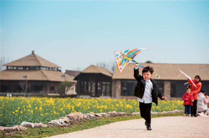 烏鎮西栅龍形田裏的(de)油菜花(huā)正競相開放;西市(shi)河裏的(de)錦鯉剛躍出水面;西栅搖橹船的(de)船槳正緩緩撥開水面。
