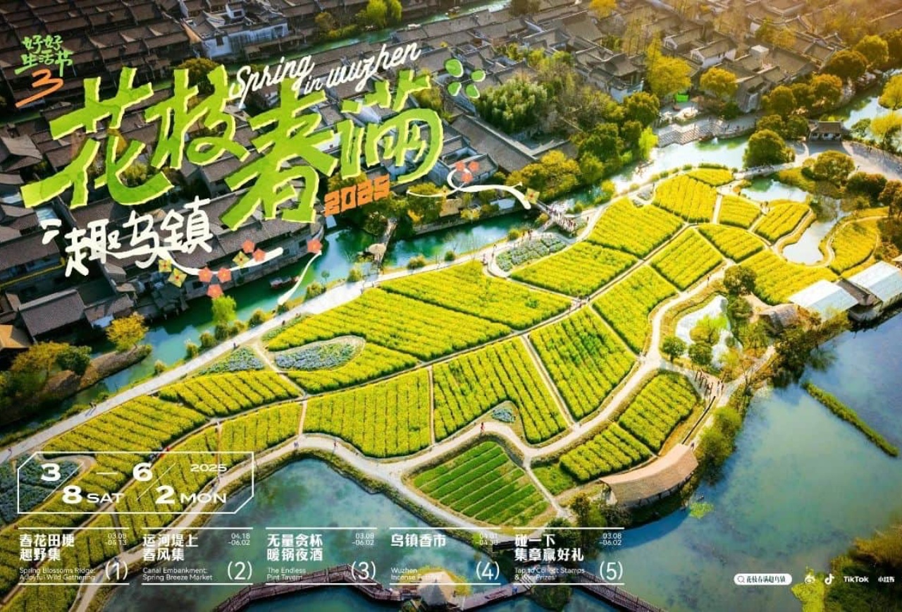 春意漸濃,江(jiang)南(nan)水鄉(xiāng)烏鎮迎來年(nian)度文(wén)旅盛(sheng)事。3月8日(ri)至6月2日(ri),"烏鎮好好生(sheng)活節(jie)"第三季"花(huā)枝春滿趣烏鎮"正式(shi)啓幕。活動(dòng)以(yi)"浪漫、治愈、在(zai)地、戲劇、煙火、差(cha)異"六大(da)春日(ri)感官體(ti)驗(yàn)爲(wei)核心,串聯(lian)婦女節(jie)、清(qing)明、勞動(dòng)節(jie)三大(da)節(jie)假日(ri),推出五大(da)主(zhu)題闆塊活動(dòng),爲(wei)遊客打造(zao)沉浸式(shi)江(jiang)南(nan)春日(ri)盛(sheng)宴。